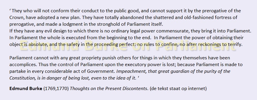 ‘ Oké. Laten we hier later op terugkomen. Het is inderdaad disproportioneel om het de volgende verkiezing niet-op-die-of-die partij te stemmen, als ultieme “straf” voor politieke incompetentie te beschouwen. Bizar, want de boosdoeners hebben er geen centje pijn aan en vallen meestal nog omhoog ook, en dan krijgen ze nog meer uitbetaald. Inderdaad een raar systeem, de democratie waar we’ ons ieder dag gelukkig om moeten prijzen. De politici lachen in hun vuistje.’