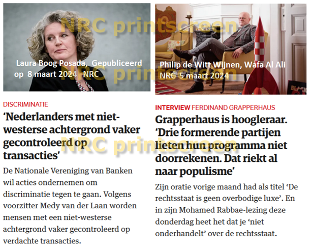 ‘ Dit zijn vingeroefeningen in het werken met Open AI en ChatGPT. De Amerikanen nemen de Nederlandse onderwerpen voor hun rekening (Van der Laan, foto Bart Maat en Grapperhaus, foto Roger Cremers) en de Nederlanders doen de Amerikaanse onderwerpen.’
