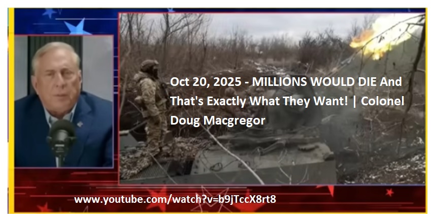 Oct 20, 2025 – MILLIONS WOULD DIE And That’s Exactly What They Want! | Colonel Doug Macgregor – www.youtube.com/watch?v=b9jTccX8rt8