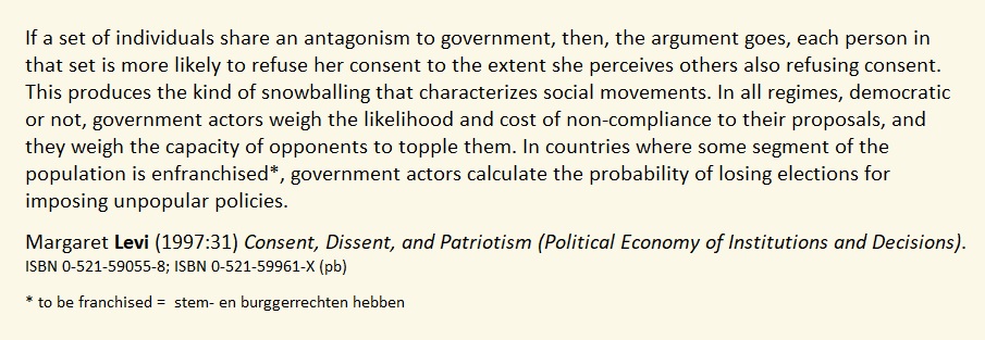 - ‘ Klopt. Ik herlees Paul Feyerabend regelmatig – anarchistische informatieverwerking. Het is maar net in welke bui je bent en hoe je bent bedraad/gewired. Als je er een gewoonte van maakt, dan kun je er veel profijt van hebben. Zeg, dat boek van Arnout Maat is ook best actueel. Het stuk over D66 (Dolende democraten, bladzijde 99 – 178) bijvoorbeeld, heeft niets aan informatie-waarde ingeboet. Bekijk daarvóór liefst de video van Remieg Aerts nog een keer (let op de ijzeren wet van Michels, over oligarchievorming) en je bent het mannetje.’