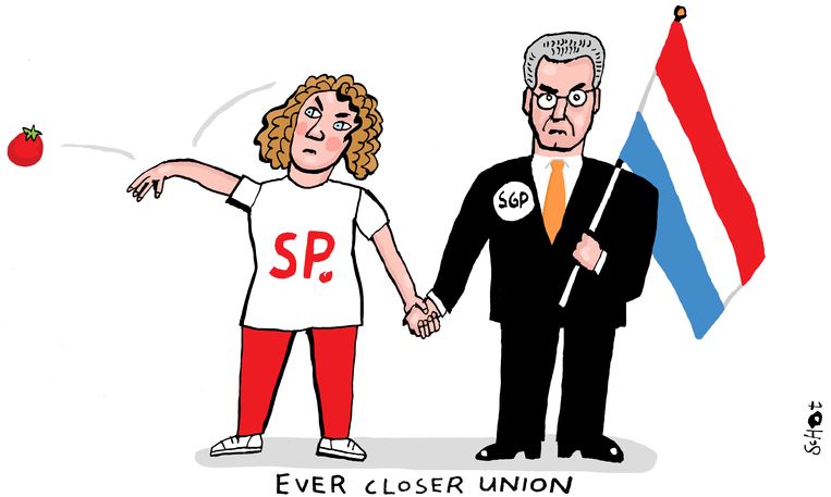 ‘ De cartoon van Bas van der Schot zou een waarschuwing voor Forum kunnen zijn,’ meent Ilham, ‘ het lot van de SP zou het voorland van Forum kunnen wezen. Forum krijgt nu de wind van het electorale ongenoegen in de zeilen, maar als ze niet uitkijken, gaan ze de SP achterna en wel in een nog rapper tempo. Trouwens, Schot zet bij zijn cartoon “Het Ron Meyer-effect,” maar Jos Collignon tekende ooit een treffend cartoon van Jan Marijnissen, die volgens mij de SP nog steeds van achter de schermen leidt. Ronald van Raak, over wie Sheila Sitalsing schrijft, is net als Meyer een kloon van Jan Marijnissen, inclusief het denkraam en handelingsrepertoire. Dochter Lilian Marijnissen is slechts een ledenpop. Neen, met de SP is het gedaan. Tenminste zo lang de oude Marijnissen nog rondloopt en niemand hem het leiderschap effectief betwist.’