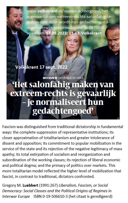 – ‘ De etikettenplakkerij kan erg verwarrend werken. Moet je bang zijn voor een club of persoon die door de MSM als “extreem rechts” wordt omschreven? Waarom eigenlijk? Wat verstaat men onder de term “extreem rechts”? ‘