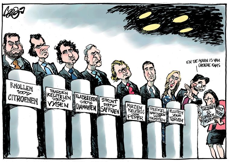 –  ‘ Amen. Een zware kluif, waar de Haagse kaasstolpers vorstelijk voor worden betaald, zou je zo zeggen. Me dunkt dat de cartoon van Jos Collignon op de VK site van gisteren, boekdelen spreekt: praatjes voor de vaak en beschimmelde lulkoek. Ja, die gooi ik er in  als tegenhanger van de clitoris.’