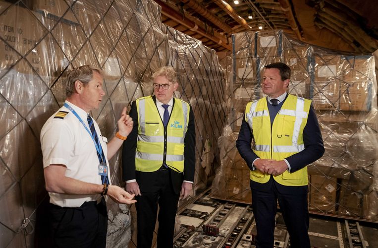 ‘ Kleine coupures en cash. Ja, dat zouden ze – dus KLM-bobo’s Elbers, Smith en anderen – hebben bedongen. Ze wilden hun bonussen en andere remuneraties in contanten, in kleine coupures, en in verschillende valuta. Hier zie je ze staan voor de tweede dropping, in het laadruim van een vliegtuig. Het geld is waterdicht in dozen gepakt en zal ’s nachts worden gedropped op obscure privé-vliegveldjes in negorijen als Zwitserland, Luxemburg, de Kaaimaneilanden, Virgin Islands, de Bahama’s, in Hong Kong en eigenlijk over de hele wereld. Dit is in die biotoop standaard praktijk. Het gebeurt al jaren, maar nu eiste Wopke H. “transparantie” vanwege de Corona en dus laten ze openlijk zien om hoeveel dozen geld het gaat. Maar dit is pas de tweede tranche hoor. Er volgen er meer, want de geldhonger in die kringen kent geen grenzen’