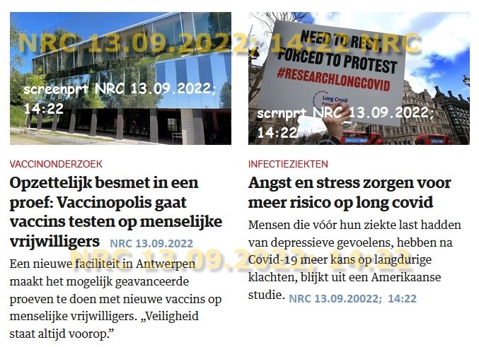 Ik hoorde het verhaal in de trein zo’n vijf jaar terug en ik moest eraan denken door de videoclip over deze Syrische persoon, en door nog een paar videoclips die voorbij kwamen. Dit NRC-artikel van 13.09.2022 heb ik niet gelezen, ik gebruik enkel het vignet. Deze twee vignetten stonden naast elkaar op de NRC-site. De associaties komen vanzelf. Er was in dat verhaal van de mevrouw in de trein een agressieve flatbewoner van het balkon gevallen en kort daarna in een naburige stad, nog een. De media besteedden er (uiteraard) geen aandacht aan, maar dit soort gedrag van (mede-)bewoners zou destijds wel (even) zijn opgehouden, en men kon weer normaal wonen. Nou ja, normaal. Voor zover dat mogelijk is in een overvol land, wanneer je geen vette portemonnee hebt.’